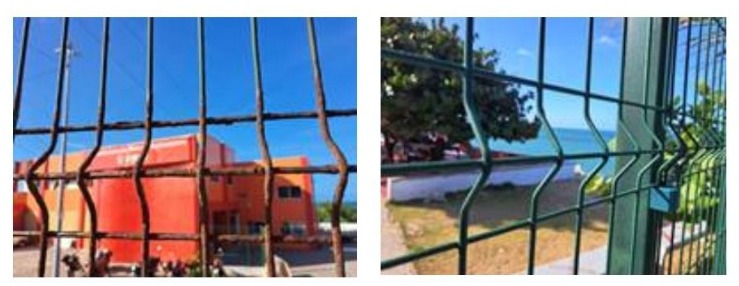 À esquerda, gradil pintado com pintura eletrostática com sinais de desgaste e ferrugem devido aos efeitos da maresia. À direita, Gradil Morlan d [...]